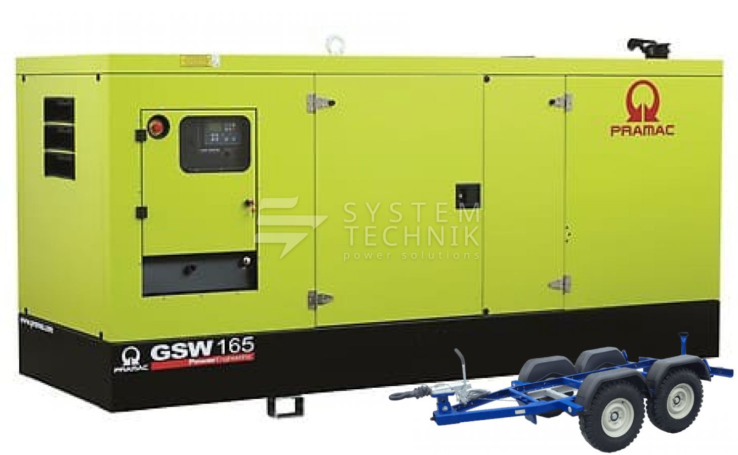 - Дизельный генератор Pramac GSW 165 P 230V 3Ф В кожухе на прицепе