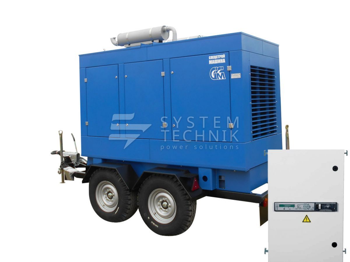Дизельный генератор ССМ ЭД-200-Т400-2РПМ2 в погодозащитном кожухе на шасси с АВР на прицепе в Солнечногорске